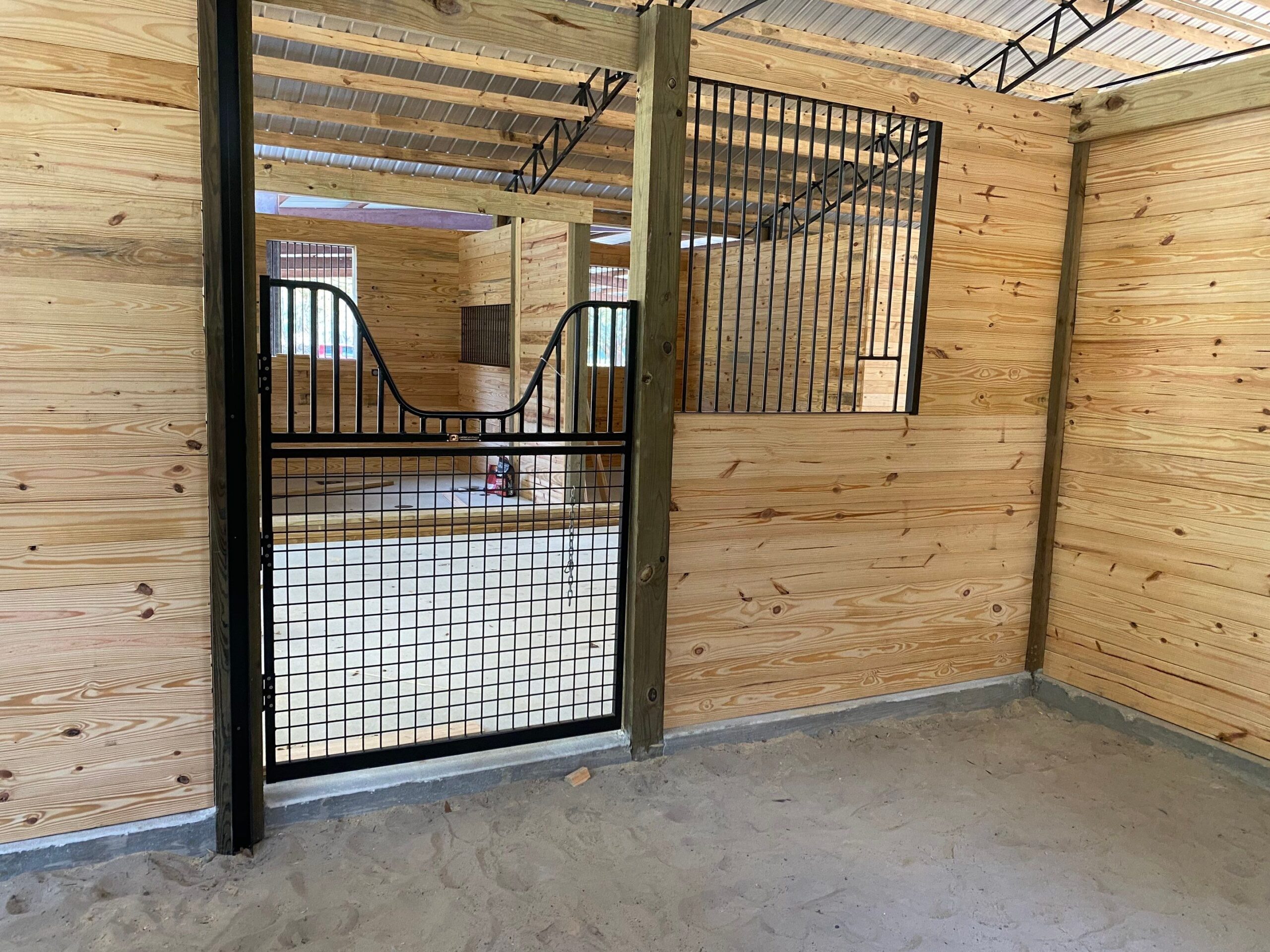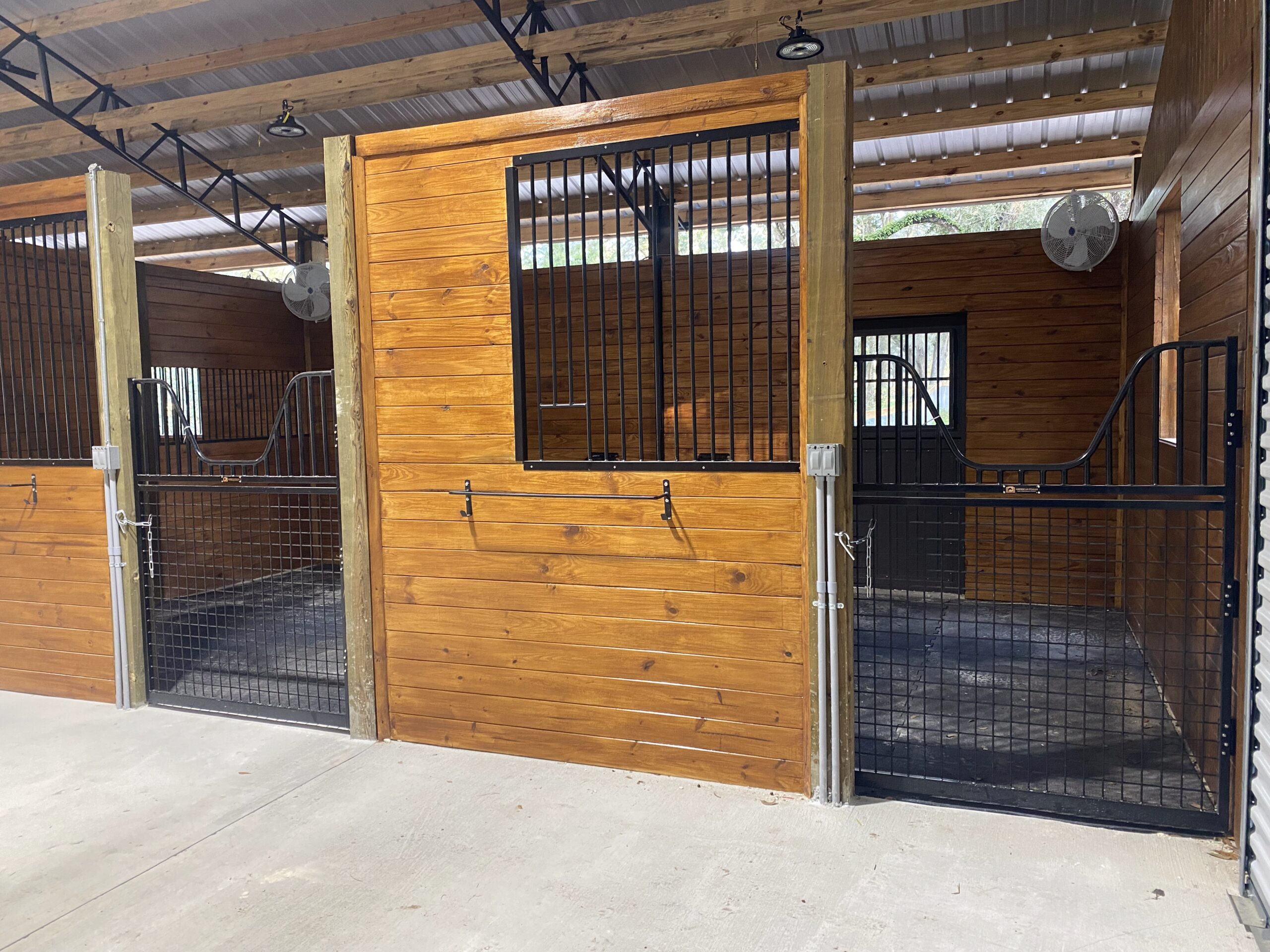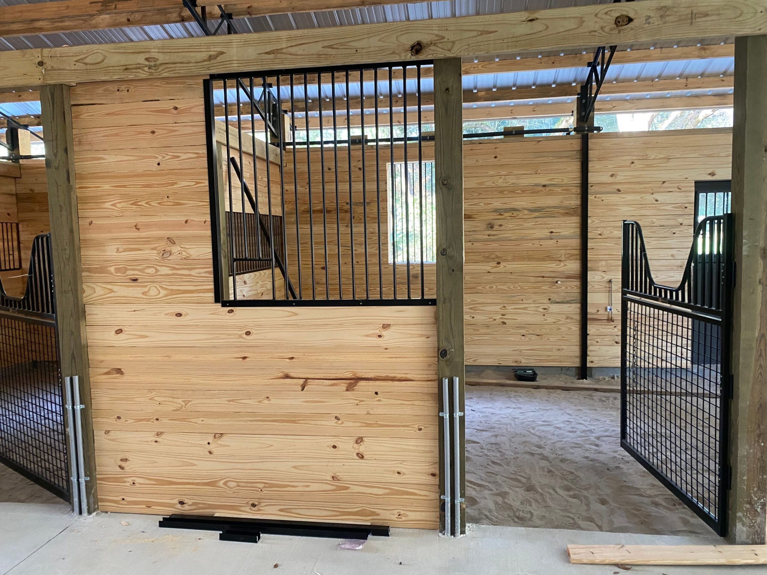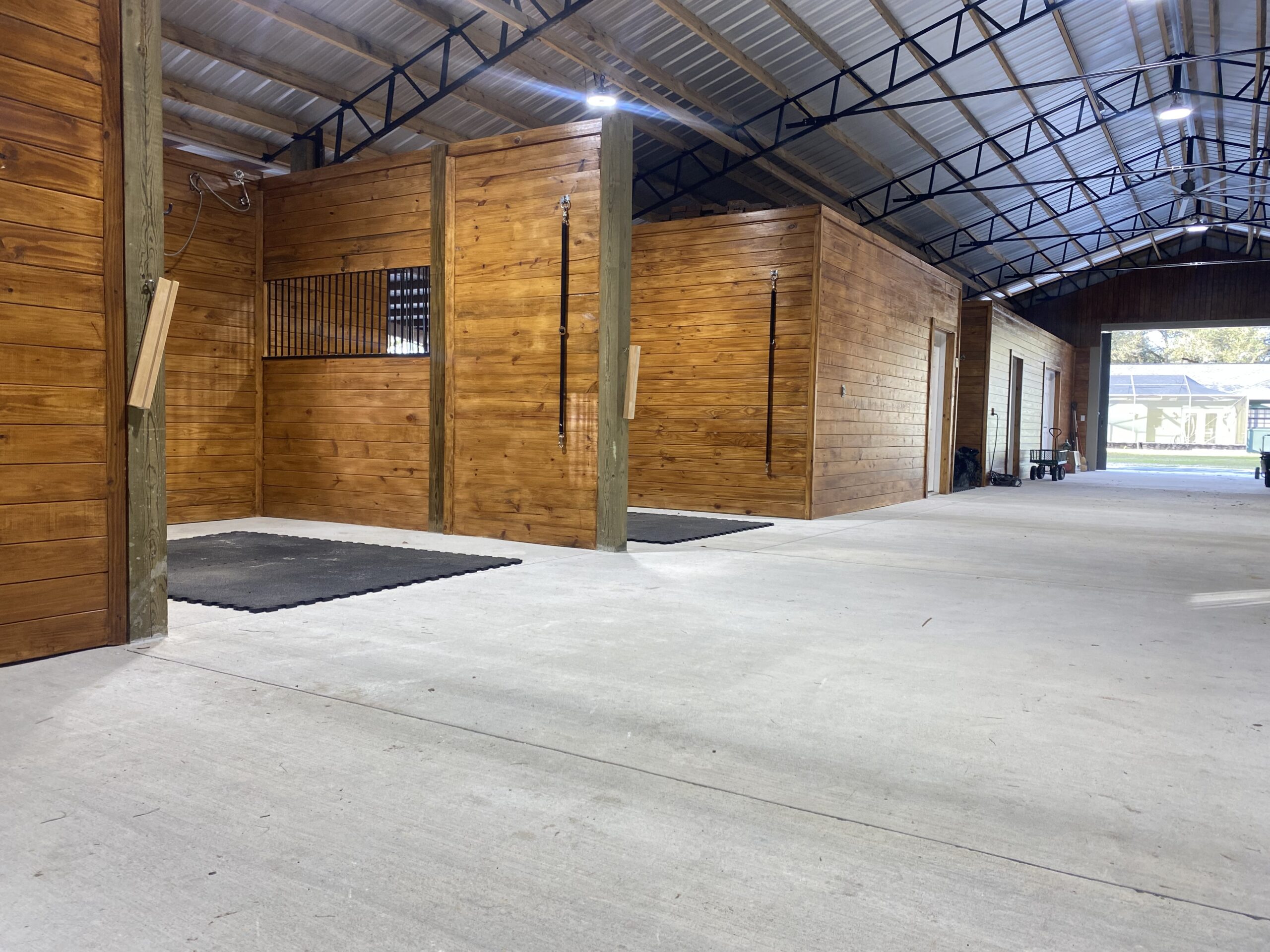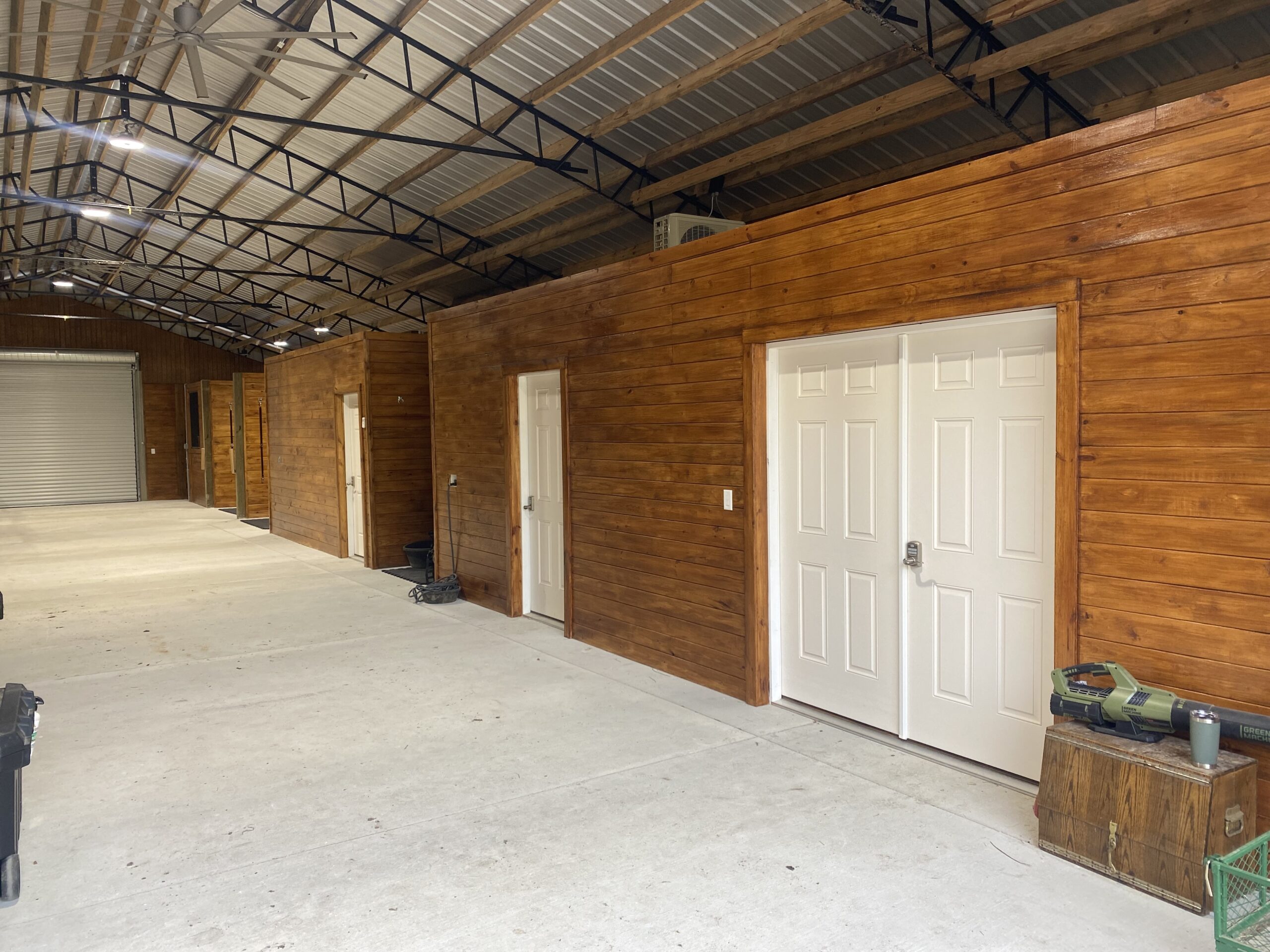 - Custom tack rooms, wash bays, and feed storage